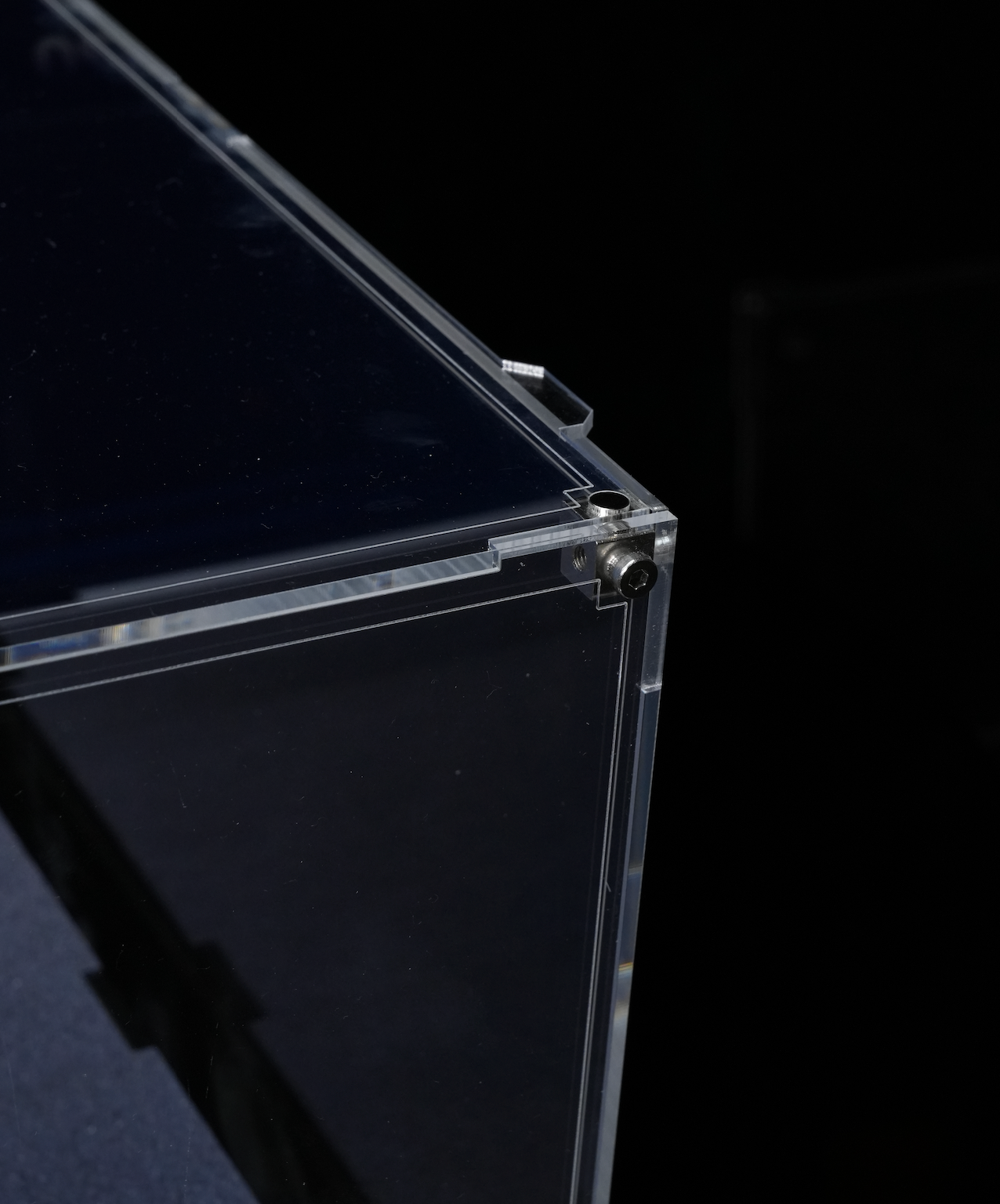 6-color ultra-detail UV printing background. The 10mm black refined acrylic base is paired with a double-sided acrylic display panel featuring both a mirrored and patterned design, offering an elegant and personalized display option.
